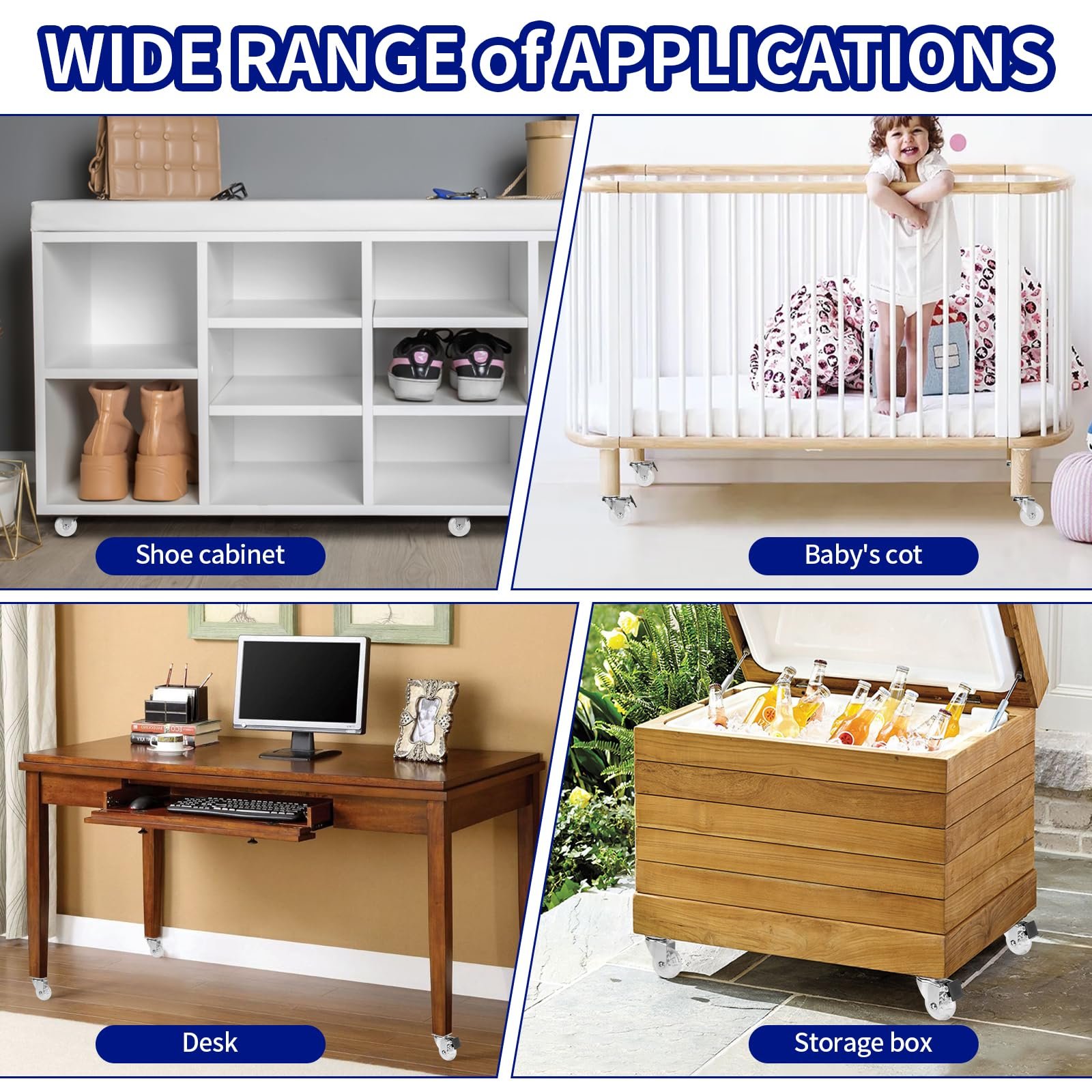 - Wide Usages: Widely used indoor and outdoor, furniture, trolleys, workbench, shelves and other items commonly found in workshops, garages, kitchens, offices etc.