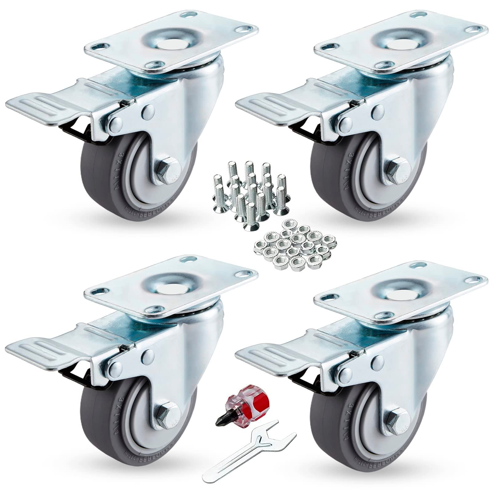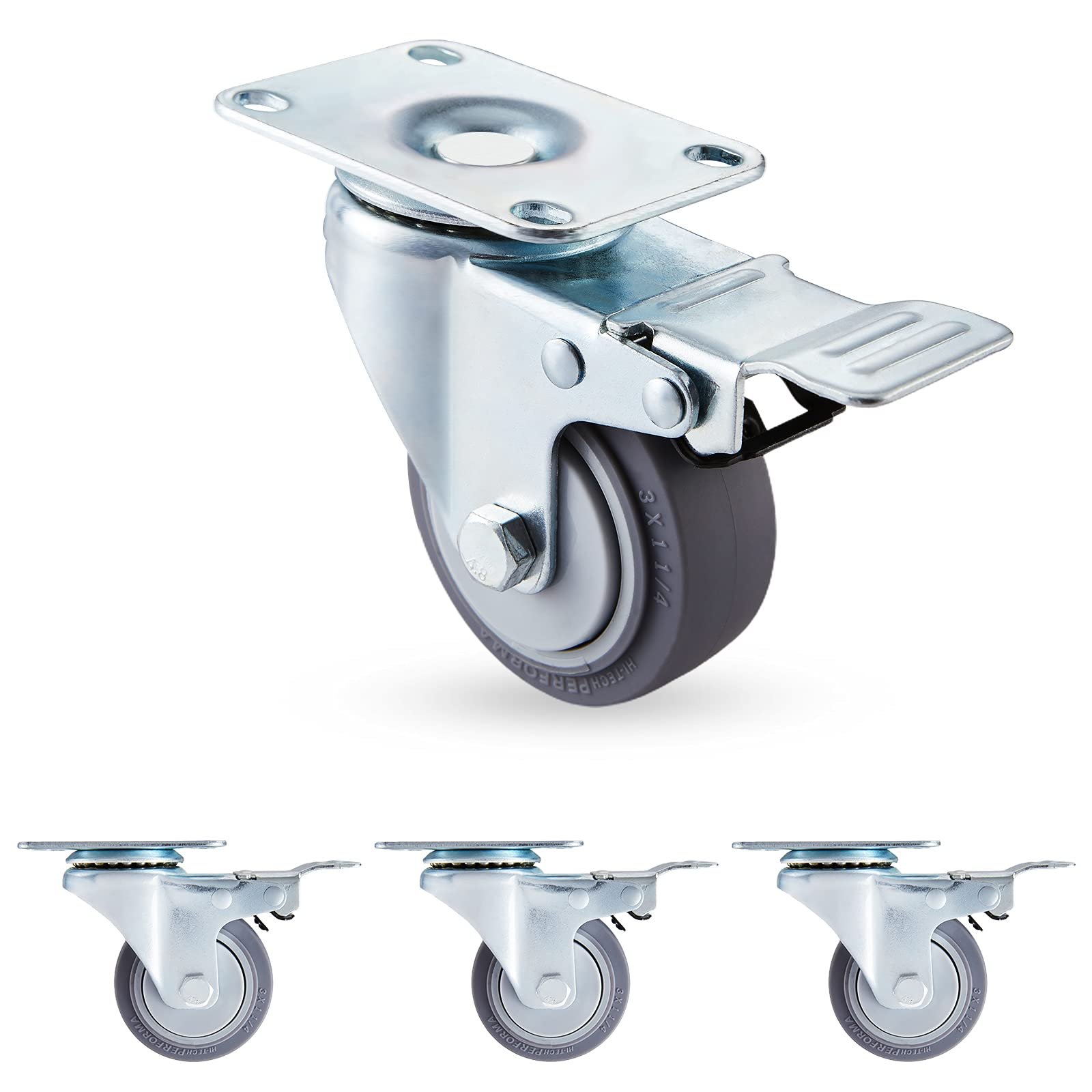 3 inch Caster Wheels Set of 4, Heavy Duty Casters Set of 4 with Polyurethane Wheels No Noise, Locking Casters Swivel Plate Castors with Dual Brake for Cart Furniture Industrial Workbench Load 1000 LBs